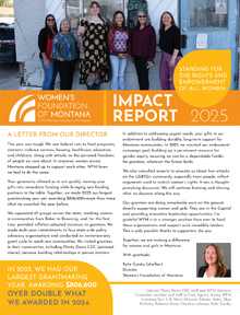 The Women’s Foundation of Montana’s annual impact report is hitting mailboxes around the state and available online now. This year we’re highlighting women across Montana who stepped up to support each other in 2025. Read about grantees like NACDC Financial Services, which empowers Native women in the finance sector through their Yellow Bird Fellowship Program, and Berry Medicine Native Birthworks Initiatives, which focuses on Indigenous maternal and child health. The report also highlights the work of our grantees during last year’s legislative session to advocate for policies that support caregivers, child care, reproductive rights, health care access, and community safety and anti-violence.